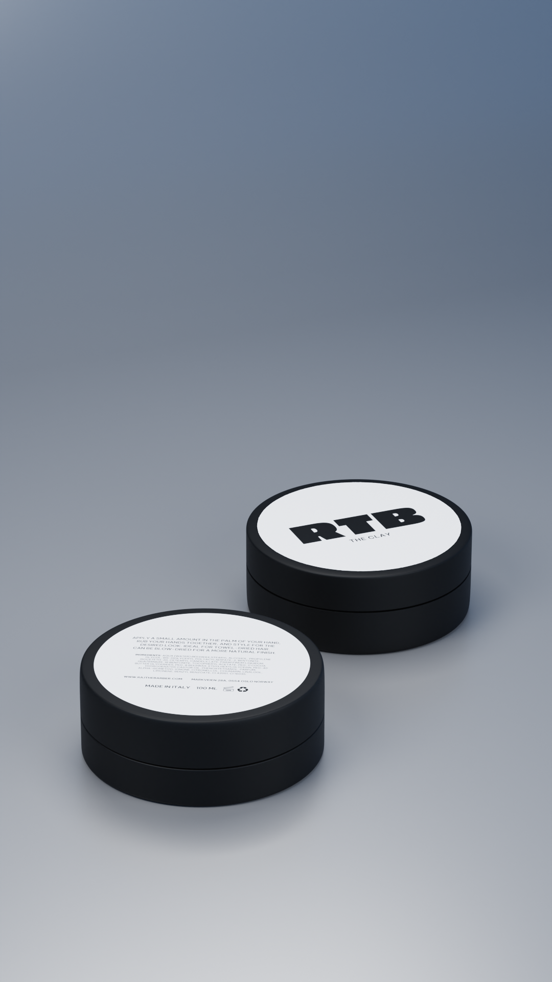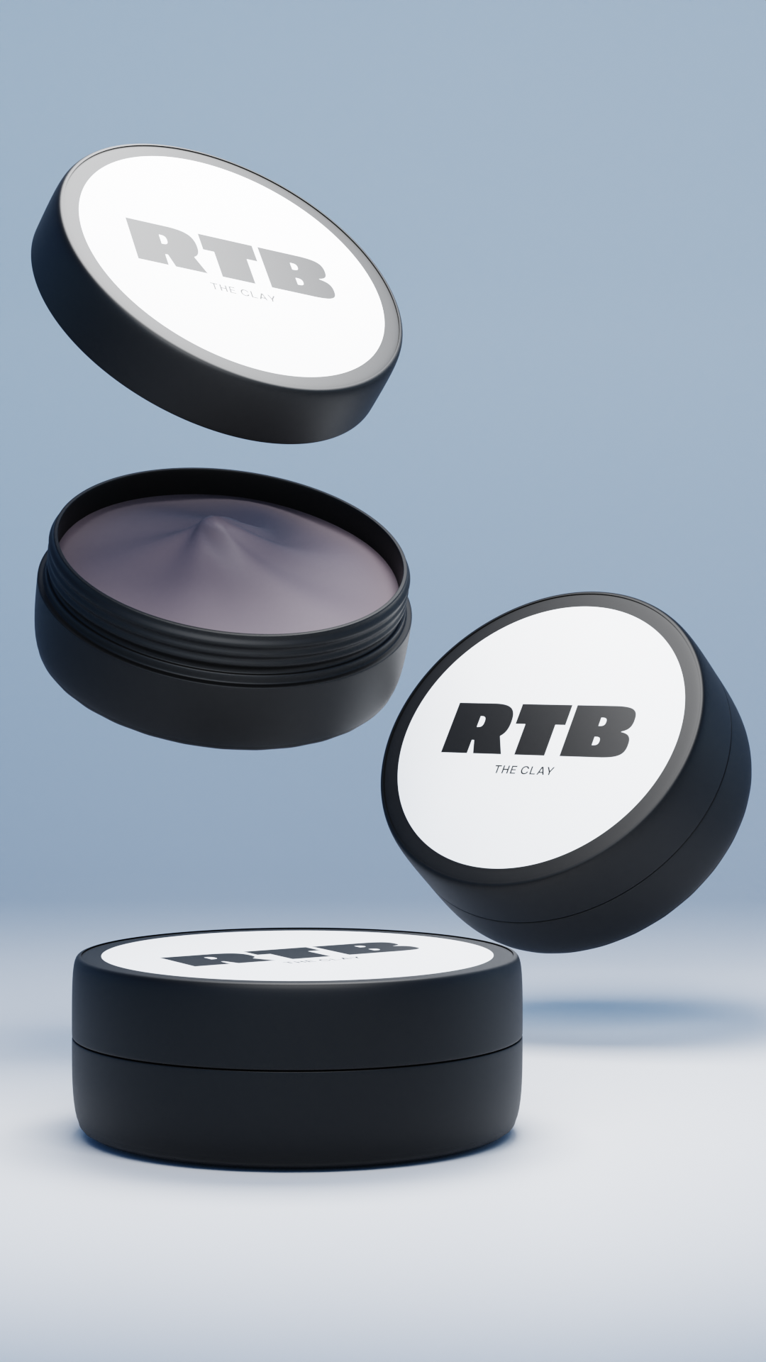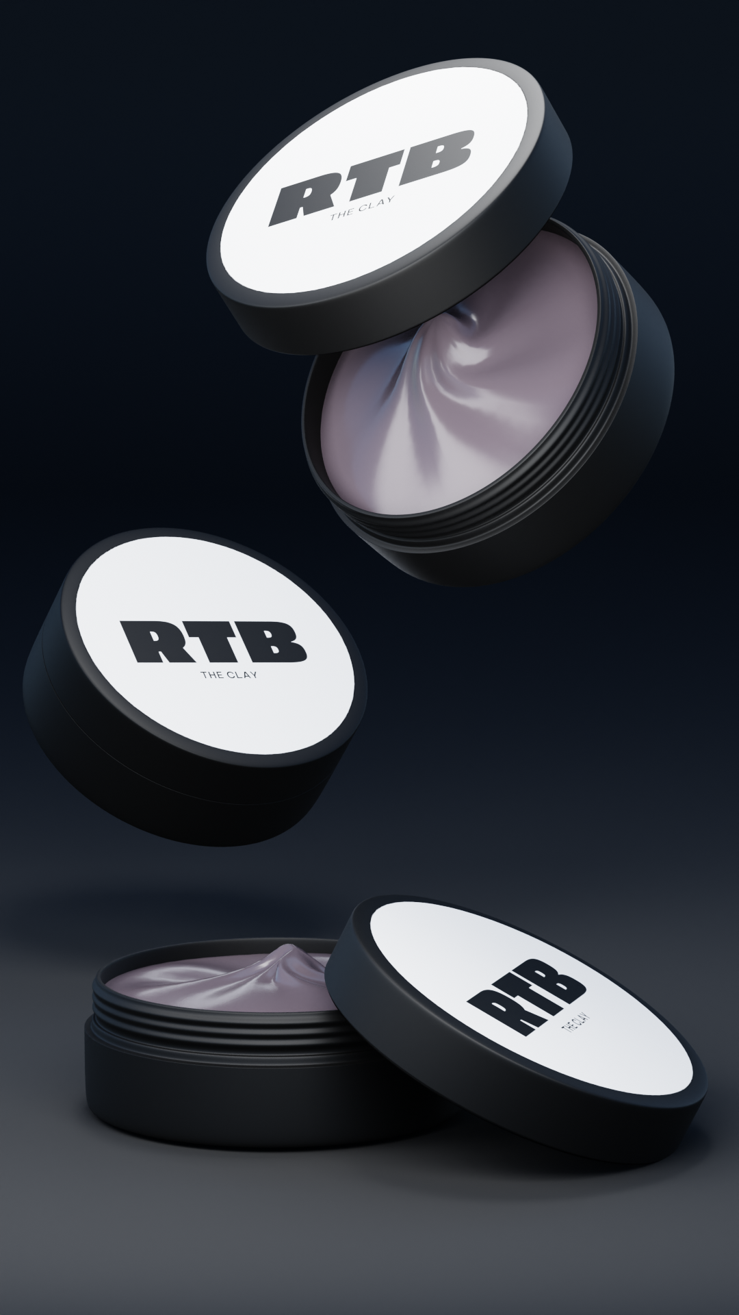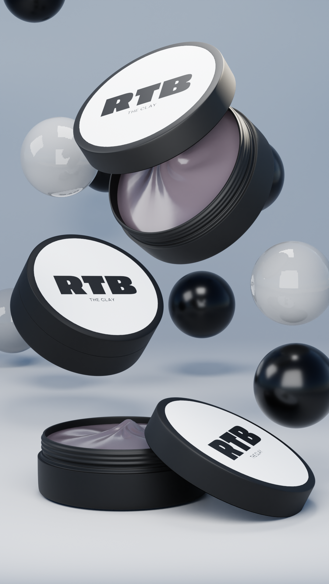 This is a product render and design of RTB's own clay. RTB is a barbershop located in Oslo